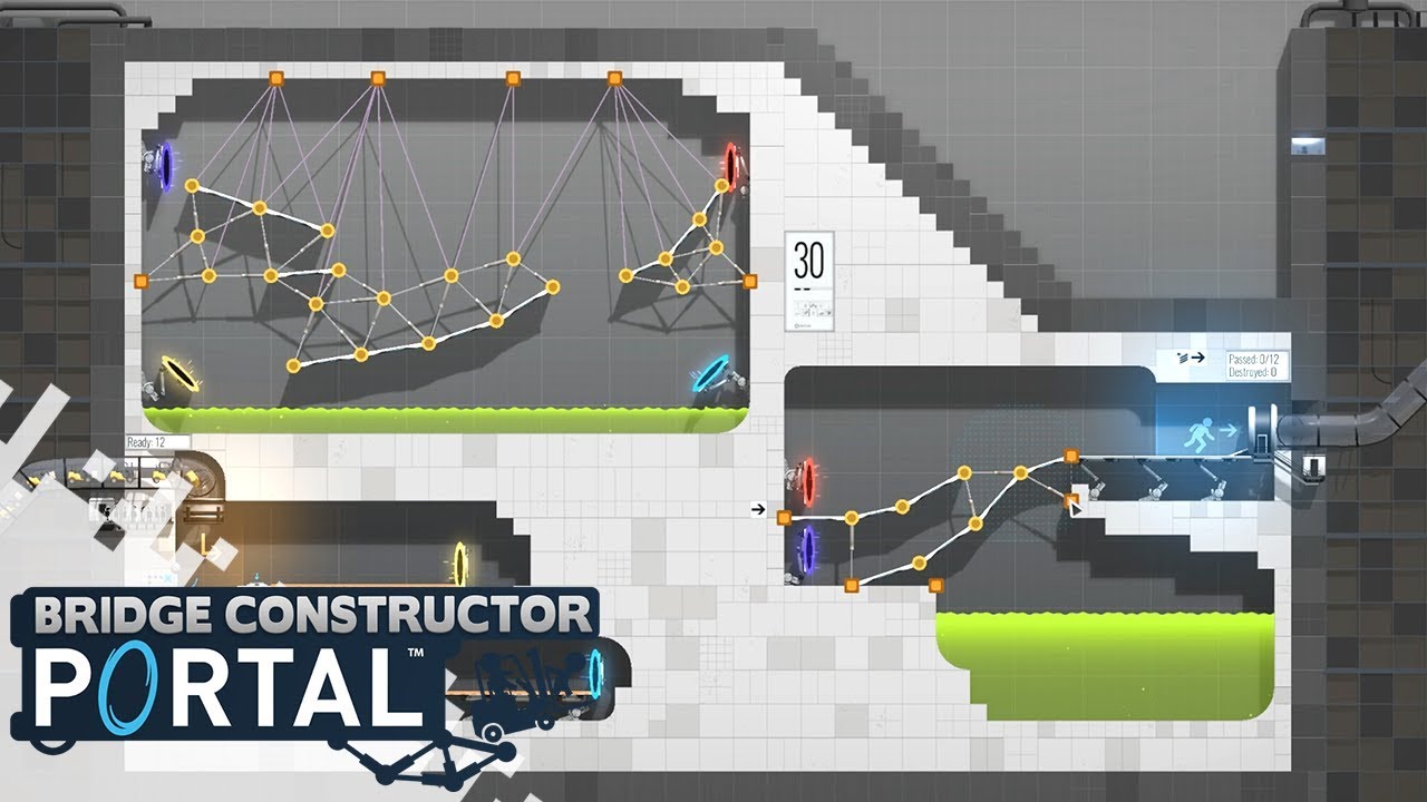 The Bridge Constructor Portal game logo appears over a complex test chamber with bridges and glowing portals. Bridge Constructor Portal is a beginner-friendly engineering sandbox with a playful theme. You build, test, fail, and improve, which is the fun part. The puzzles feel like experiments, not exams. It’s slightly “more than basic,” but still approachable if you like tinkering.