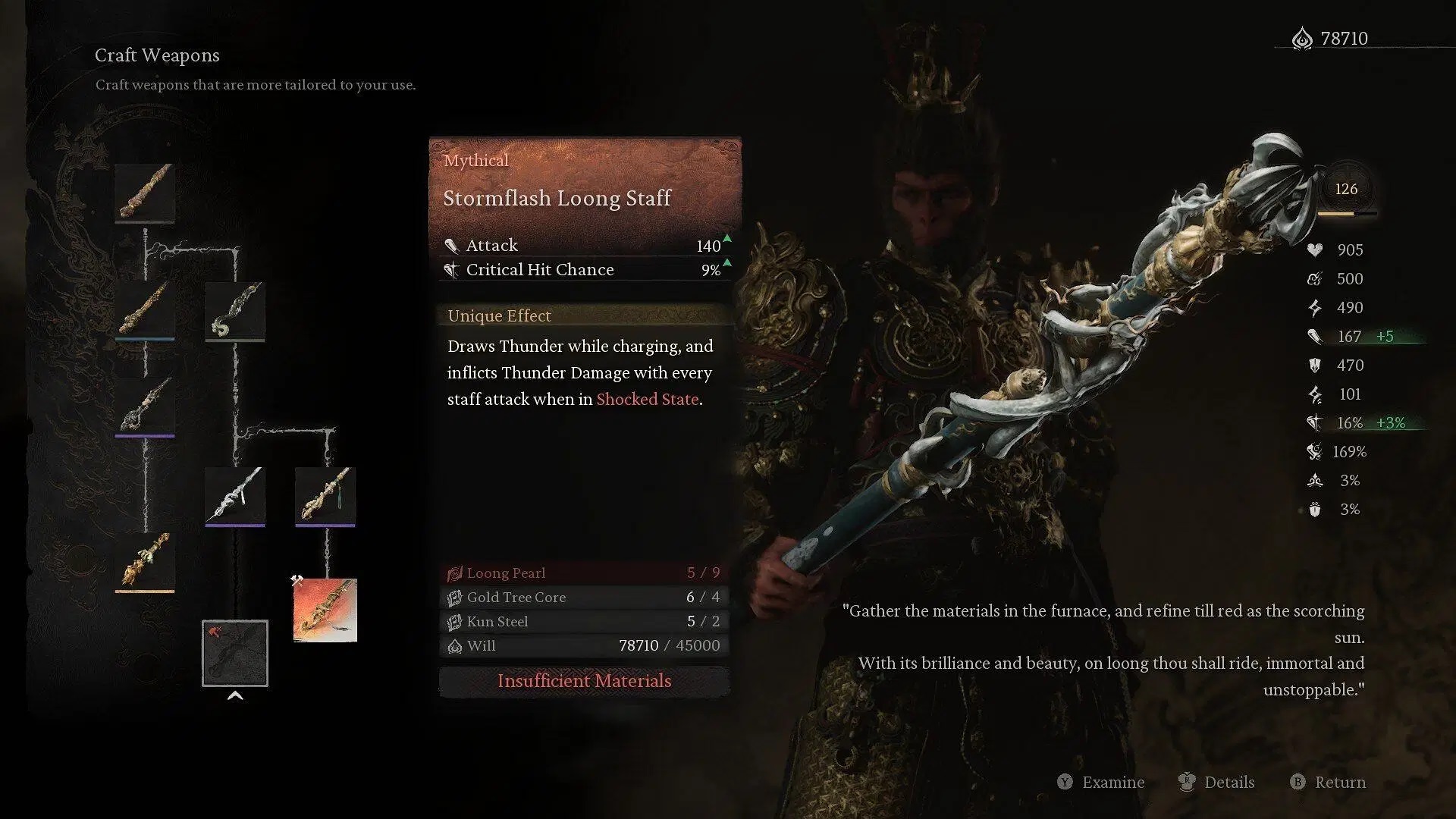 Hidden Passive Synergy: The Loongwreathe Staff has a lightning affinity baked into its stat curve. When using Thunderfist Strike or Heavenly Crackle, it applies bonus shock buildup.
