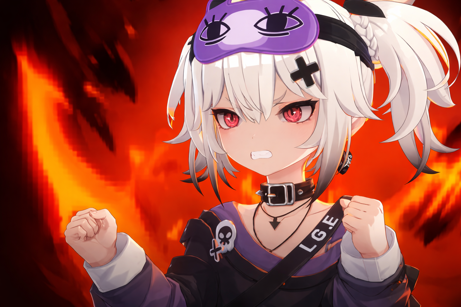 UC Chasing Kaleidorider character angry expression anime girl white hair red eyes purple mask disrupter unit UC is the closest thing to a “carry” in the current version of the game.