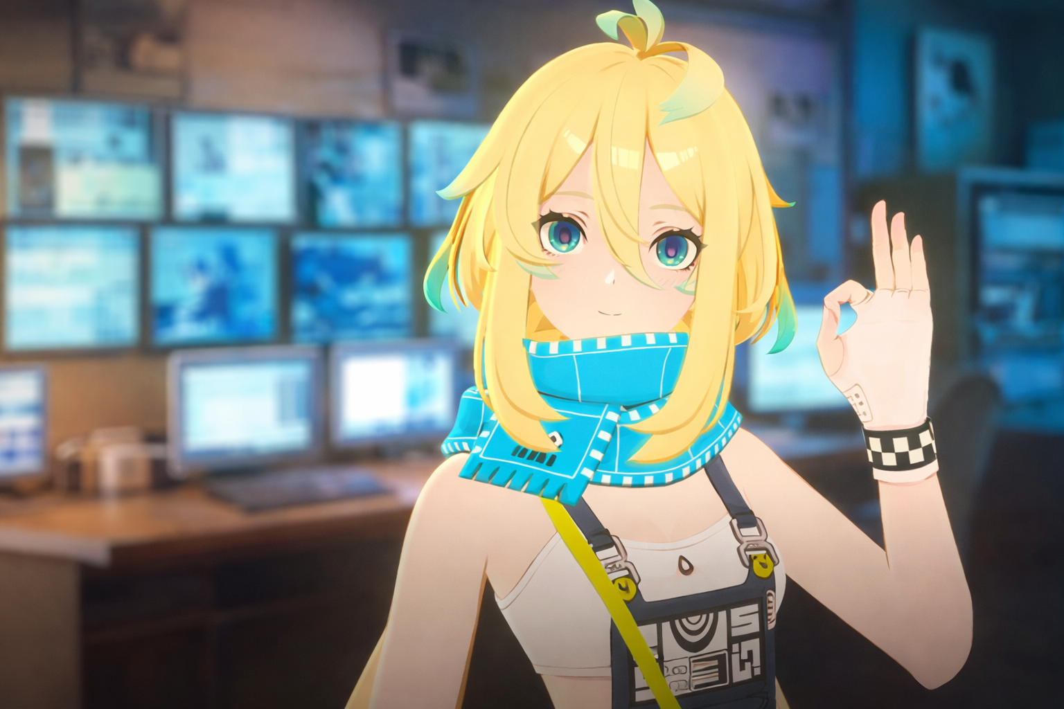 Prome Chasing Kaleidorider character anime girl blonde hair tech room energy support disrupter unit Prome is often misunderstood and undervalued.