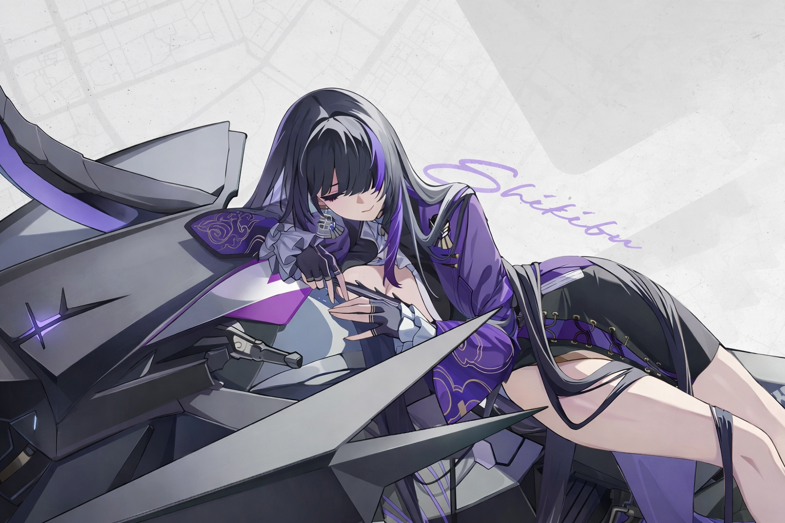 Shikibu Chasing Kaleidorider character anime girl riding motorcycle purple outfit harmonizer unit Shikibu has quietly become one of the most important characters in the game.