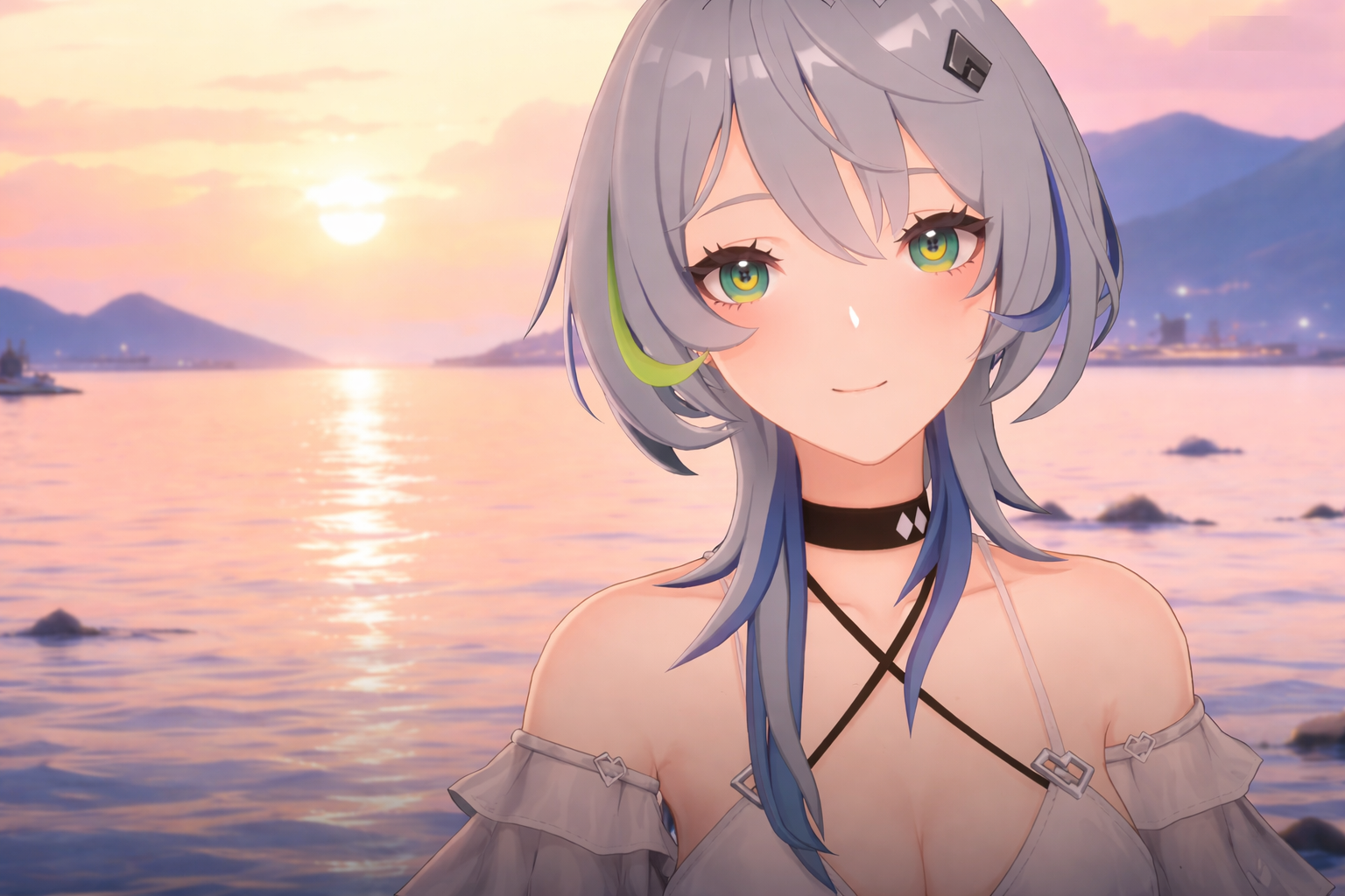 Nana Chasing Kaleidorider character anime girl sunset beach green eyes gray hair protector unit Nana represents something many players underestimate: Stability.