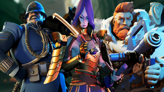 A soldier, a masked warrior, and a heavy weapons expert stand side-by-side