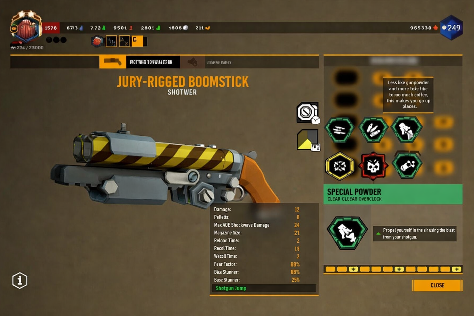 Deep Rock Galactic Special Powder overclock Boomstick shotgun mobility build and stats Special Powder is one of those overclocks that proves utility can be just as valuable as damage. I do not rank it this highly because it tops the scoreboard. I rank it this highly because it changes what Scout is capable of surviving.