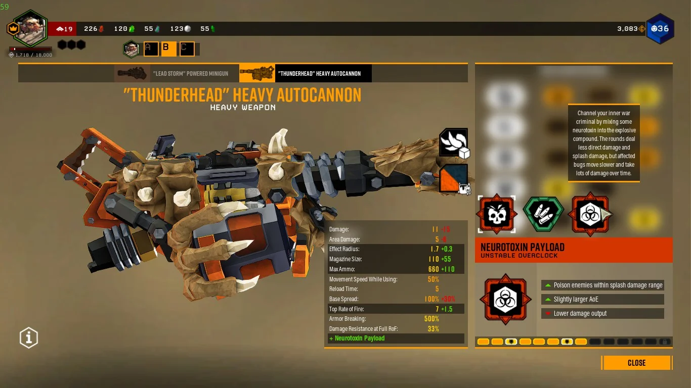 Deep Rock Galactic Neurotoxin Payload overclock Thunderhead autocannon stats and build screen Neurotoxin Payload remains one of the best swarm-control overclocks in the game, and I do not think that changes anytime soon. Every time I use it, I am reminded that killing enemies instantly is only one way to win in Deep Rock Galactic. Slowing them down, softening them up, and making the swarm easier to manage can be just as powerful.