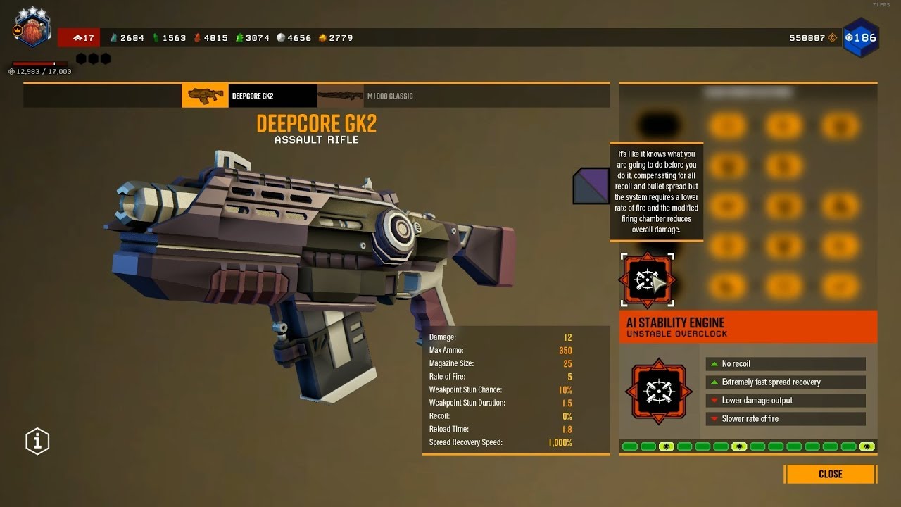 Deep Rock Galactic AI Stability Engine overclock Deepcore GK2 assault rifle stats and build setup AI Stability Engine is one of the most dependable all-around Scout overclocks I can run. It does not have the flashiest identity, but it is one of the easiest to trust. When I want a primary that feels clean, consistent, and useful in almost every situation, this is one of the first picks I think of.