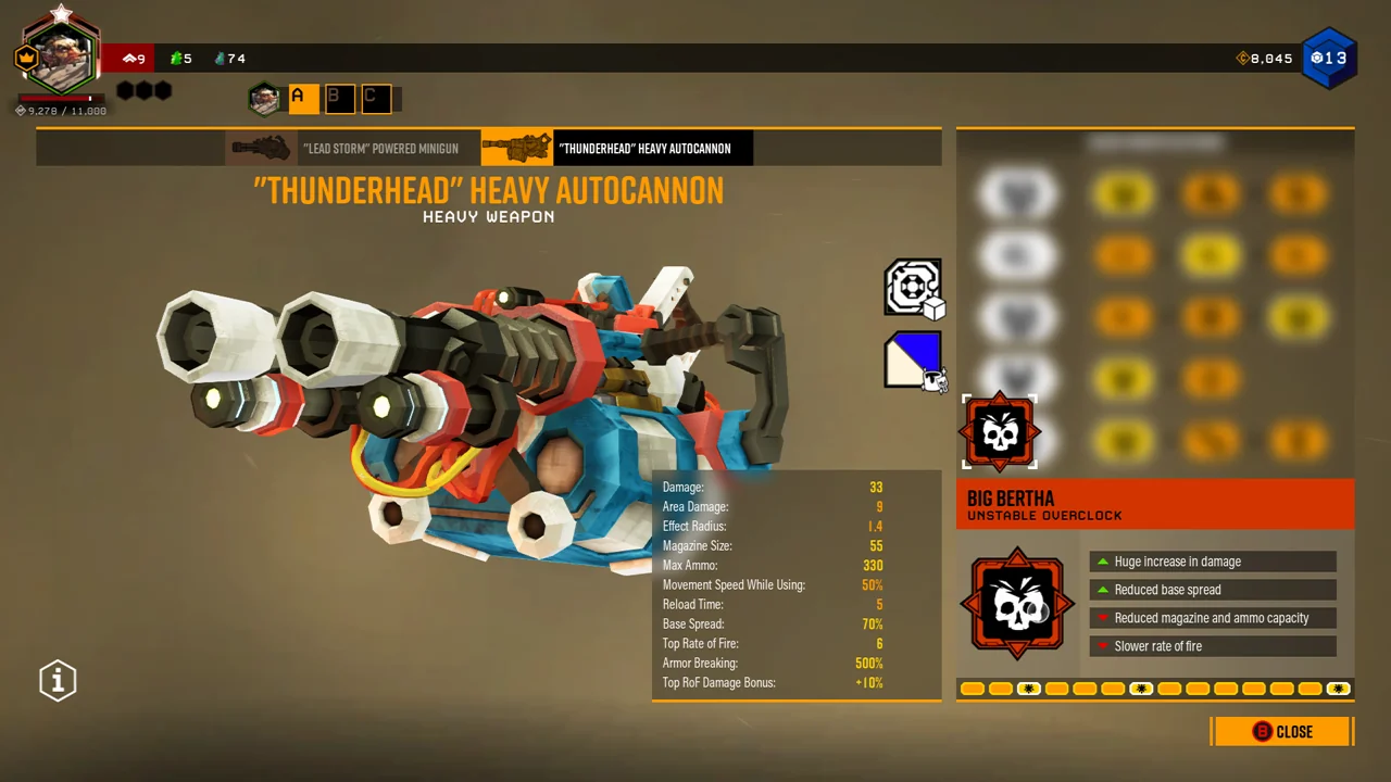 Deep Rock Galactic Big Bertha overclock Thunderhead autocannon build stats and upgrade setup Big Bertha is still a very strong Autocannon option, especially when I want a heavier direct-damage feel instead of a control-oriented swarm setup. It makes the weapon hit harder and feel chunkier, which can be great against tougher enemies and in missions where I want more focused pressure.