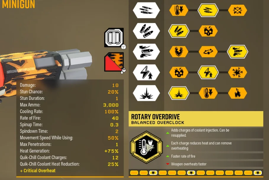 Deep Rock Galactic Rotary Overdrive overclock minigun build stats and upgrade tree Rotary Overdrive is the overclock that really changed how I look at Minigun Gunner. Instead of treating heat like a punishment, it turns the whole overheat cycle into part of the build. That alone makes it feel far more modern than older “just hold left click” Minigun setups.
