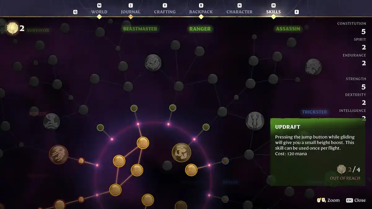 Enshrouded Updraft skill showing glide boost ability in the skill tree for vertical movement One of the biggest meta-defining additions in recent updates.