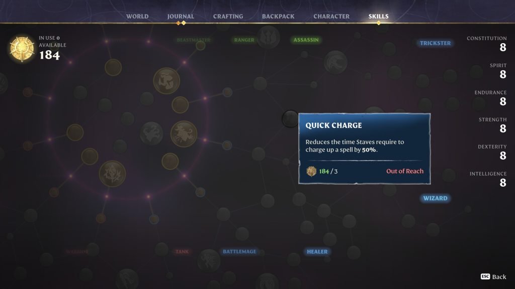 - Damage-focused skills (Wand Mastery, Sharpshooter)