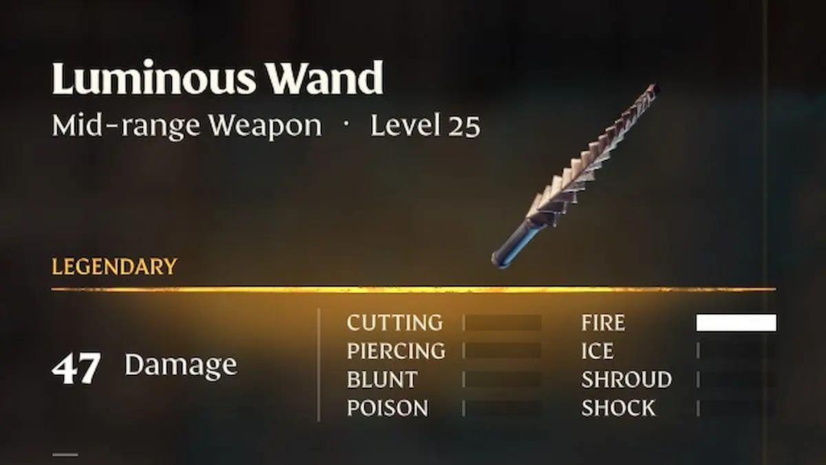 Enshrouded Wand weapon showing Luminous Wand stats used for magic damage builds A cornerstone skill for magic-focused builds.