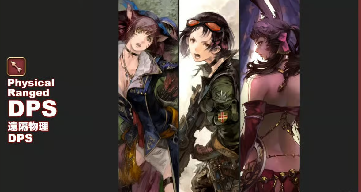 Collage image of Dancer, Bard, & Machinist with the text "Physical Ranged DPS". - Dancer:The quintessential support DPS. Dancer’s "Dance Partner" buff gives a massive damage boost to the strongest DPS in the party, and its raid-wide mitigation is invaluable. The job’s priority-based rotation and high mobility make it a fun and flexible choice.