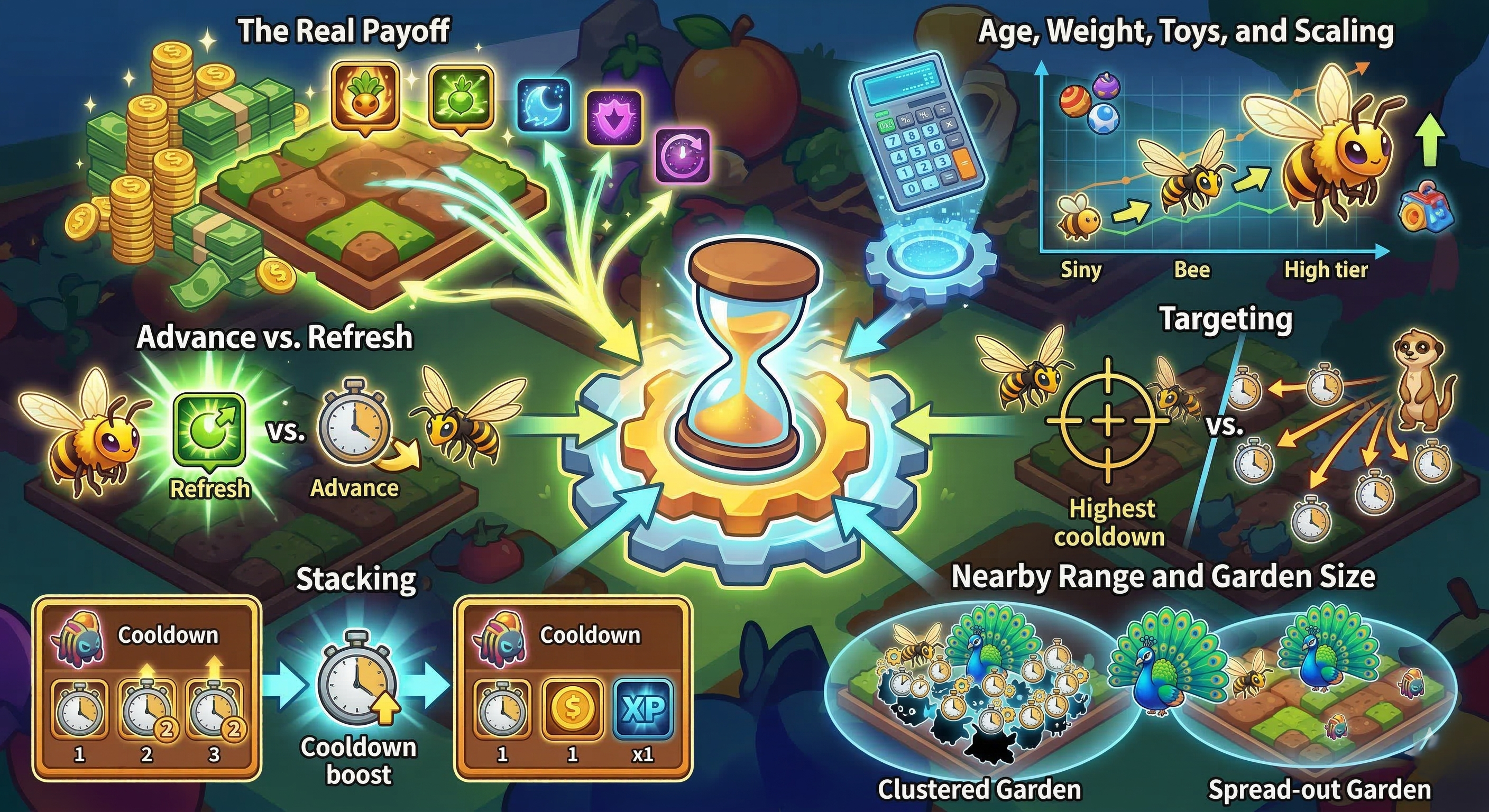 Why Cooldowns Matter:Why dedicate a precious pet slot purely to cooldown reduction instead of a flat coin multiplier?n Because in Grow a Garden, your economy scales directly with your active abilities.