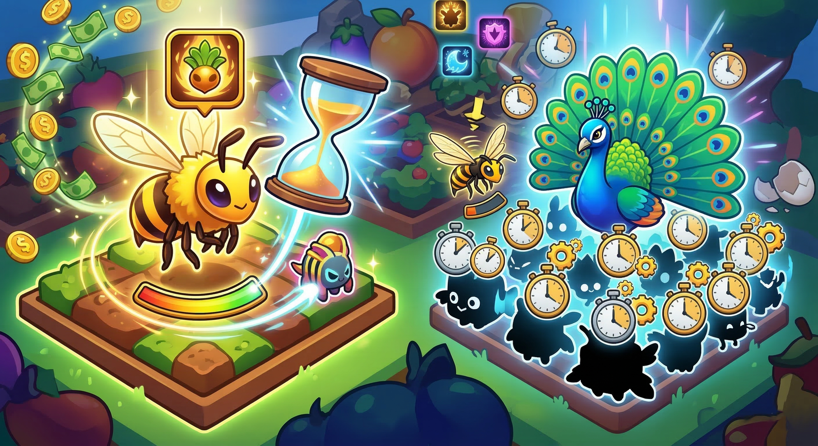 A player running several valuable pets in the same area should start with Peacock. In a compact build, its nearby cooldown advance can touch more than one important timer, which changes the math completely. Queen Bee may still be stronger on one pet, but Peacock can win on team throughput.
