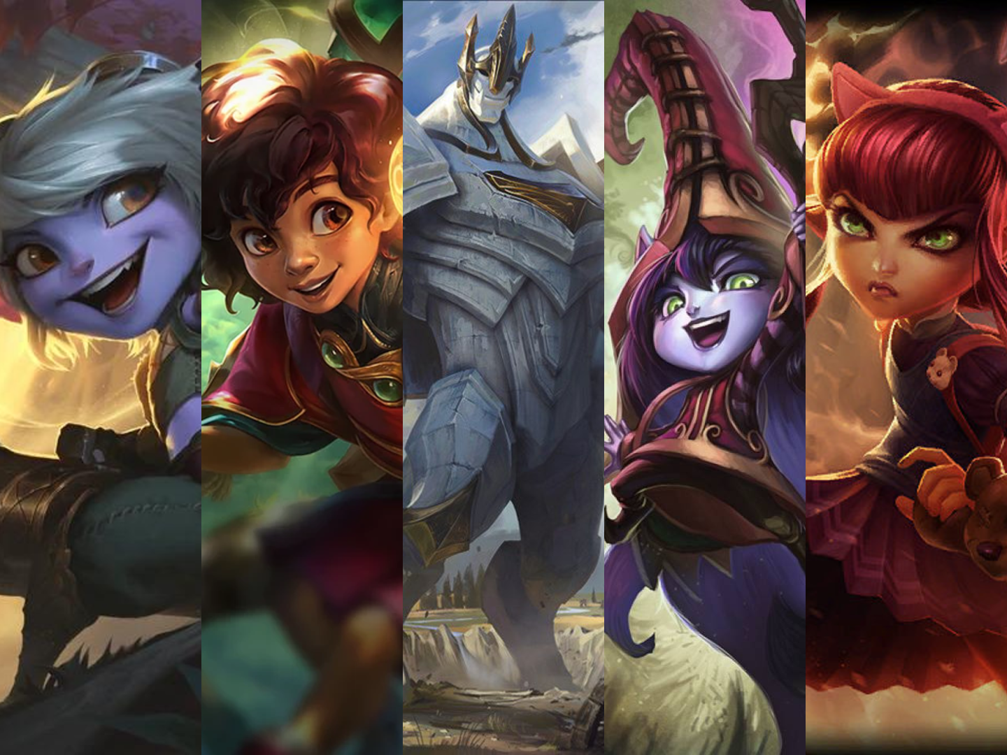 A collage image of Tristana, Milio, Galio, Lulu, & Annie. These champions bring solid impact to ARAM matches with reliable scaling, team utility, or snowball potential. They aren’t as dominant as S-tier picks, but in the right hands and with the right comps, they can still take over games.