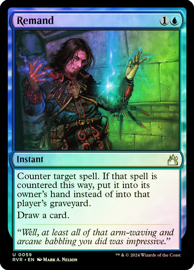 Rewind (2UU), from Urza’s Saga (1998), counters a spell and untaps four lands. In Commander, it’s a powerhouse in spell-slinging decks like Mizzix, enabling chained spells. In constructed, its high cost limits it to slow control decks like Blue Moon.
