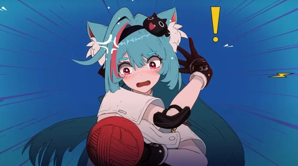 Mint character from Neverness to Everness with teal hair and cat-ear accessories in anime-style artwork. Mint is an energetic member of the Bureau of Anomaly Control known for her quick combat style and high mobility.