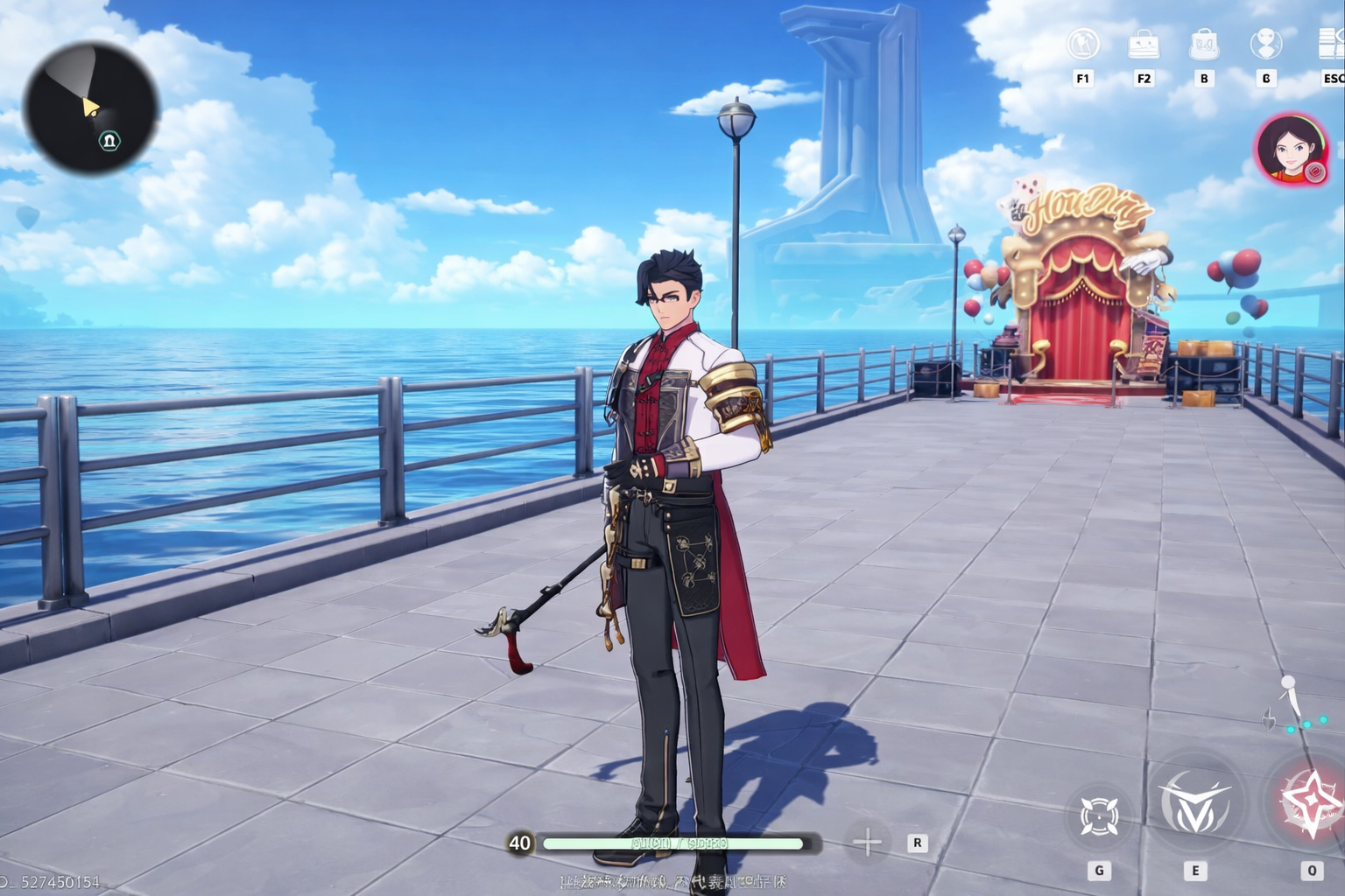 Adler character from Neverness to Everness standing on a seaside promenade in gameplay screenshot. Adler functions primarily as a tank character designed to absorb damage and protect teammates.