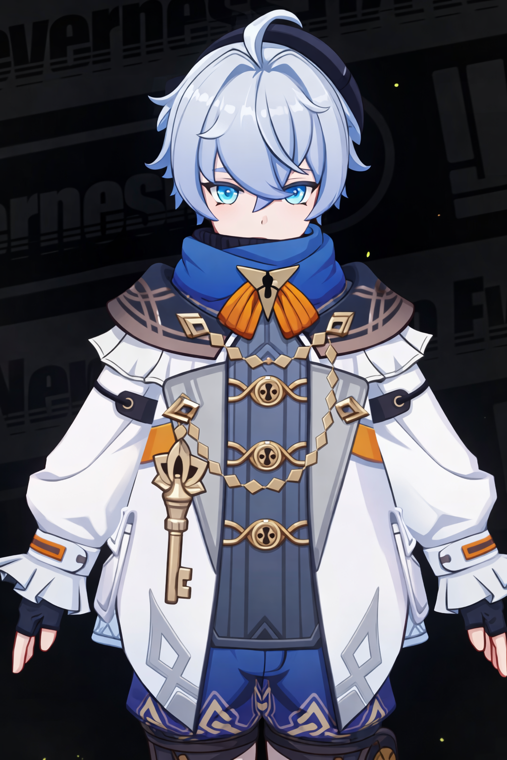 Edgar character from Neverness to Everness with light blue hair, blue eyes, and a key accessory on his outfit. Edgar offers moderate combat value but lacks a defined specialization.