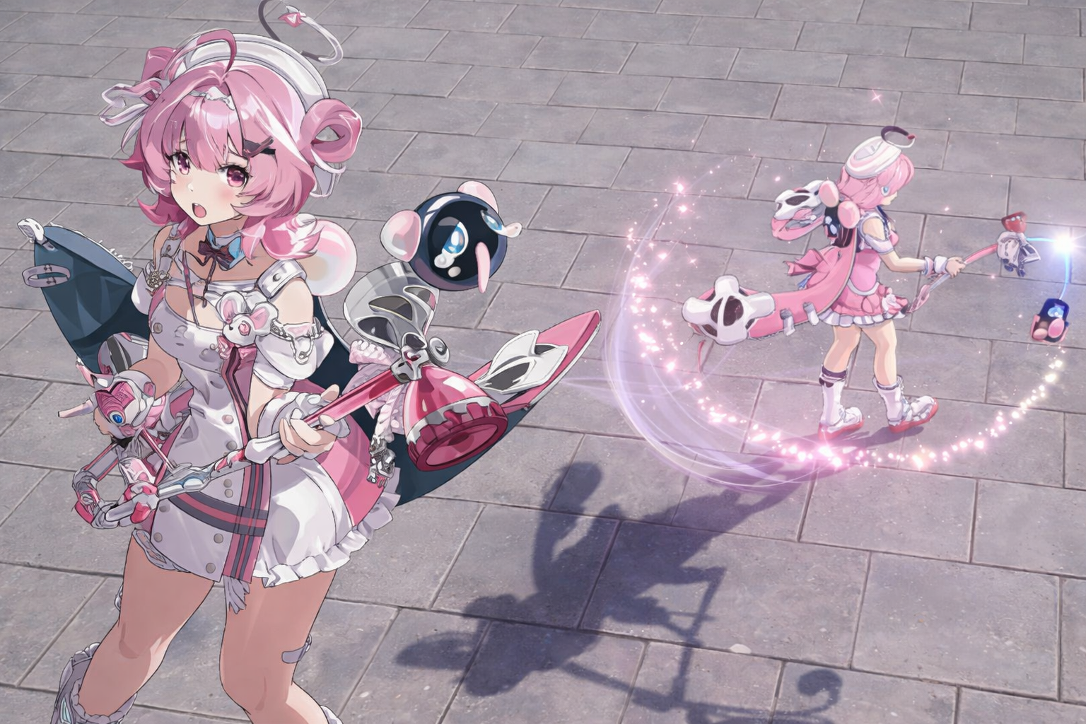Chiz character from Neverness to Everness with pink hair using a magical staff in gameplay scene. Chiz currently suffers from limited damage scaling and niche abilities.