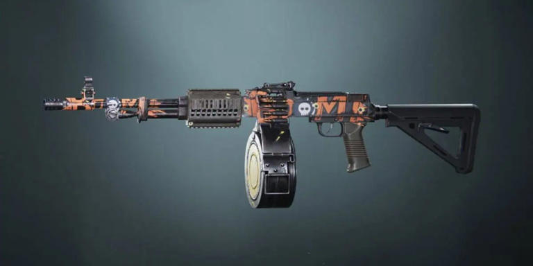 A close-up of a video game weapon, a light machine gun with a black, white, and orange aesthetic, featuring skull and "MVI" logos Choosing the right weapon in Once Human depends heavily on your playstyle, whether you're getting into PvE missions, engaging in PvP combat, or aiming for a hybrid approach. This guide breaks down weapon performance across various gameplay scenarios and progression stages, helping you build the most effective loadout.