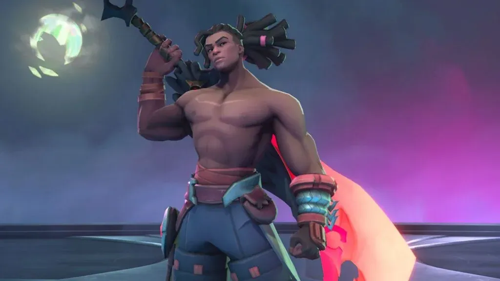 Shirtless warrior holding glowing axe over his shoulder Brall earns S tier because he is the kind of melee threat that can make a fight feel shorter than it should.
