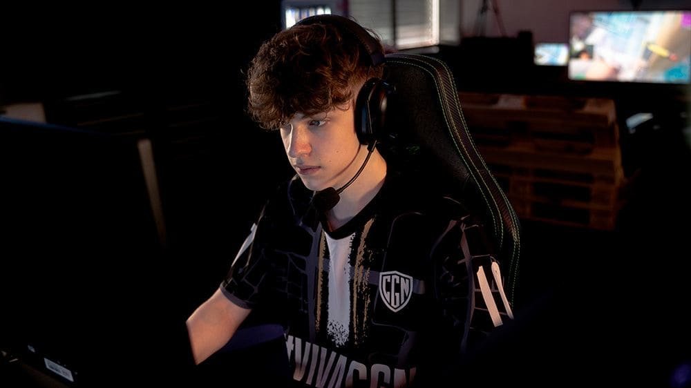 Esports player seated in studio wearing team jersey Total Earnings: ~$800,000
