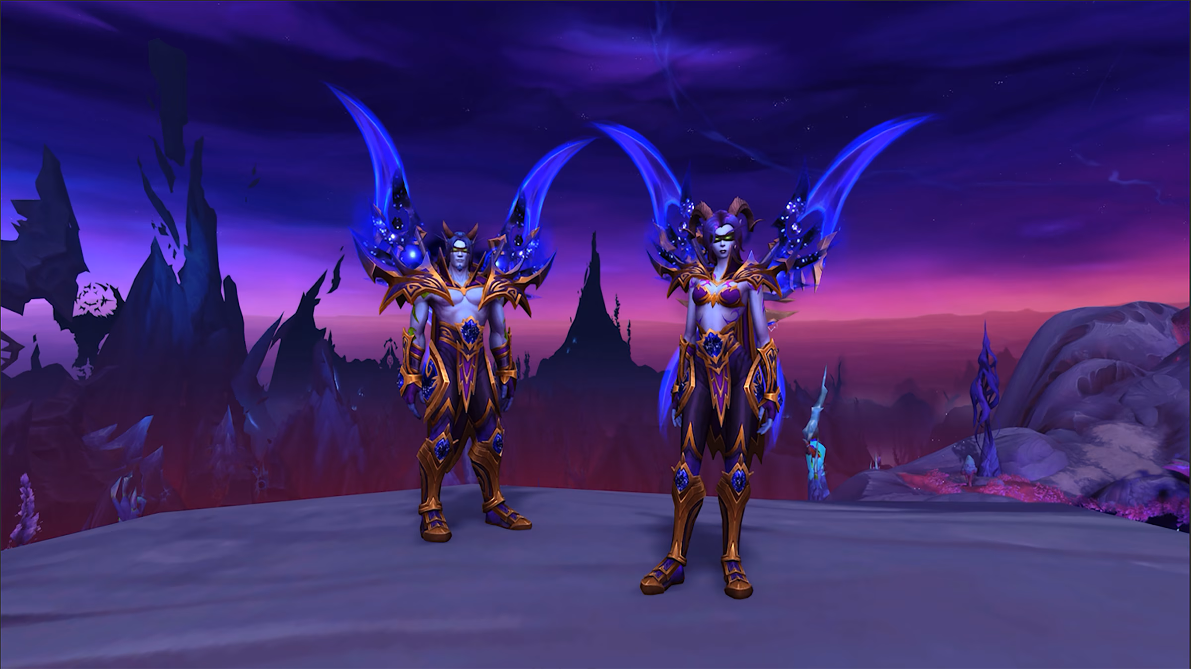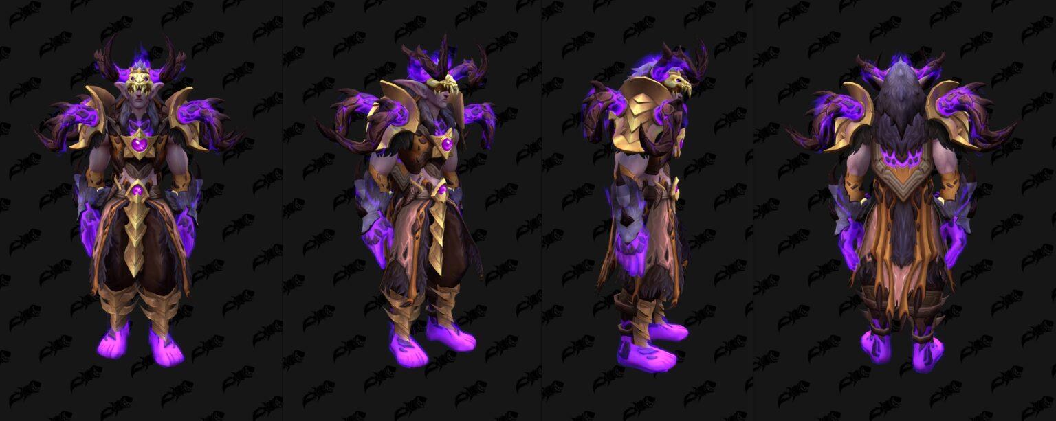 Havoc Demon Hunter armor set from World of Warcraft shown in front, side, and back views with purple fel energy and demonic armor design. This is one of the biggest “Season 1 reality checks.” With Devourer entering the picture, Havoc’s niche shrank fast, and many DH players moved to the new spec. The existence of Devourer’s full guide ecosystem also signals how mainstream that shift is becoming.