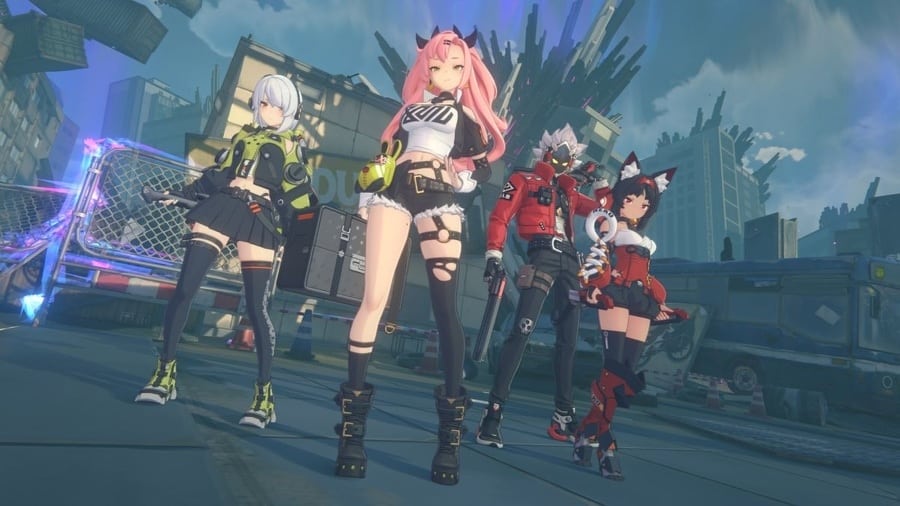 A group of anime-style characters with varied weapons and expressions, likely from the game Zenless Zone Zero